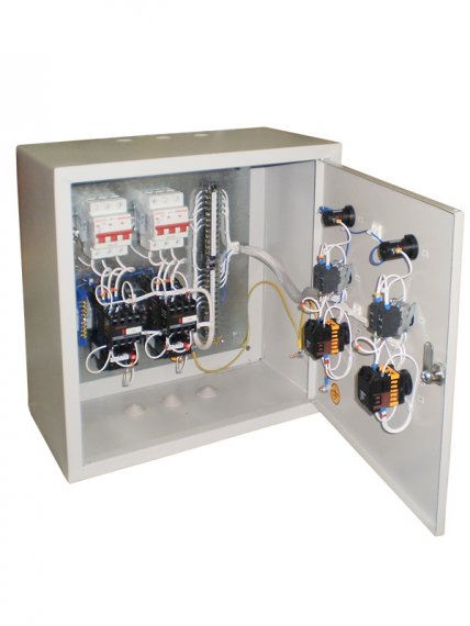 Защита при работе электродвигателя осуществляется с помощью автоматического выключателя с максимальным электромагнитным и тепловым расцепителями и тепловым реле электромеханического типа. Автоматический выключатель и тепловое реле по заказу могут быть заменены на автомат защиты двигателя.