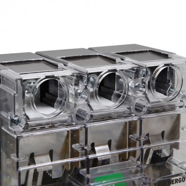 Прозрачный корпус позволяет оценить состояние контактов без необходимости разбора корпуса, что дает возможность контролировать его на любых этапах эксплуатации, позволяет минимизировать риски и экономит время и затраты на обслуживание.